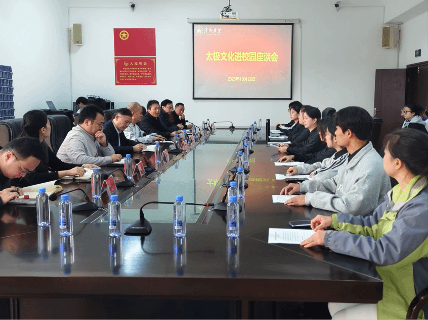 2025年10月22日上午10:30萍乡学院“太极文化进校园座谈会”在第一会议室隆重举行。本次会议由党委宣传部部长曾敏主持,党委委员、副校长陈永国,学校组织部、教务处、学工处、团委、创新创业学院、体育学院等部门主要领导出席会议,与学生代表齐聚一堂,通过成果总结、心声分享、方向谋划,让太极文化的传承活力在校园绽放。