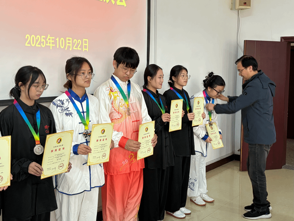 会上举行了庄重的颁奖仪式,校领导为在各类赛事中取得优异成绩的运动员颁发奖牌与证书,见证他们用汗水换来的荣誉。